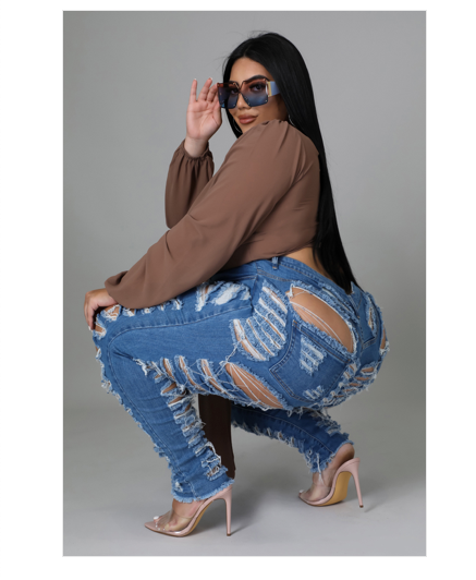 Slashed Denim Shorts Can't Resist Me Jeans Cut-Out Long Stacked Pants