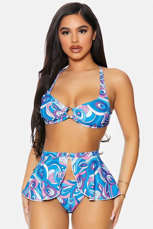 - Gold Ring Strappy Back 3 Piece Swimsuit